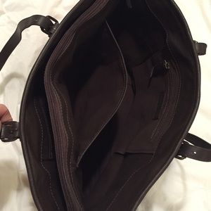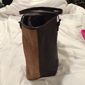 Timeless cowhide leather and HairCalf bag. "Natural" takes great pride in selecting the finest hides and skins. They source from Argentina and Belgium; where crafting premium leather goods is a longstanding tradition. There is a zippered divider and additional pockets; great for travel or the office. Size: 11.5" X 17" X 6"