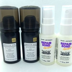 2 bottles Kristen Ess Style Reviving dry shampoo for all hair types, 0.6 oz each bottle, oil absorbing, odor eliminating, blow dry extending, vitamin rich