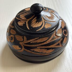 Haitana Hand-Carved Round Wooden Turned Trinket Box With Lid Stained