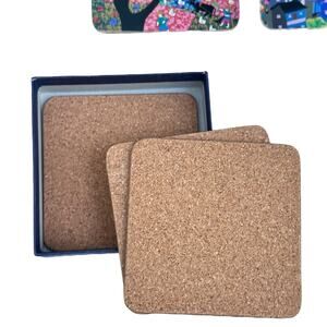 Add vibrant charm to your coffee table or dining space with this set of 6 Haitang coasters, each showcasing a unique, vivid folk art scene. These never-used, cork-backed coasters come in their original box and are ideal for daily use or as a thoughtful gift.