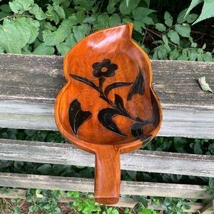 Haitian Carved Folk Art Wood Tray Bowl Flower