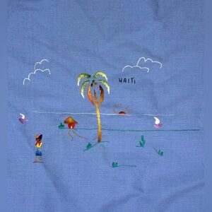 Haitian Palm Tree Tiki Hut Throw Pillow Cover Hand Embroidered Tropical Boho