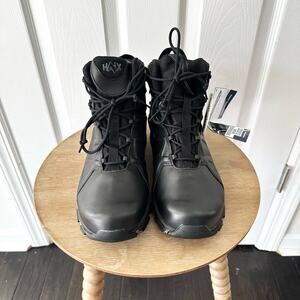 Size 8.5 US Men or EU 41 from HAIX. New with tags but no box. Black eagle tactical law enforcement 20 mid boot. Gore-tex sole.