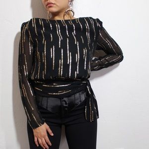 Hal Ferman Vintage 80s metallic gold blouse ✨sheer sleeves, ties on the side for a great synched waist