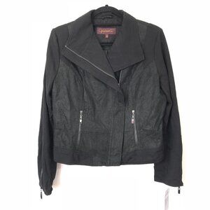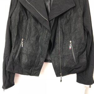 Hal Rubenstein Black Genuine Suede Leather Knit Moto Jacket Asymmetrical Size M