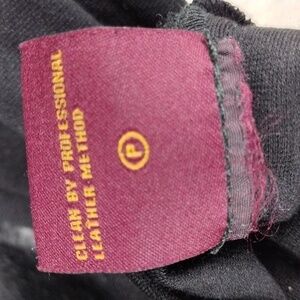 Hal Rubenstein Women's Black Genuine Leather Front Panel Rayon Shell Short Cap Sleeve Zipper Hook Back Waist Length Goth Moto Style Top. 69% Rayon, 27% Nylon, 4% Spandex. Crease Leather Front Panel Due To Not Steaming Leather. Measurements approx. Flat Lay. Pit to Pit: 19, Sleeves: 4.5, Length: 23. Size Large
