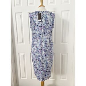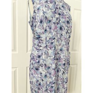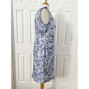 Hal Rubenstein Ruched Purple Floral Print Round Neck Sheath Dress Size 14 NWT