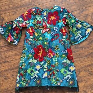 Halabaloo Multicolor Floral Embroidered Dress | Size 6