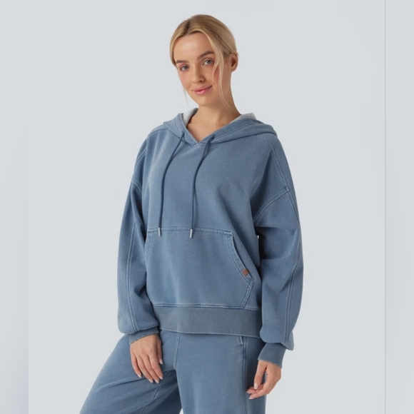 French Terry Denim Hooded Sweatshirt