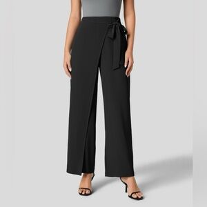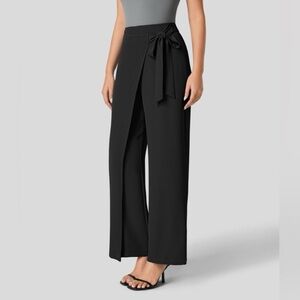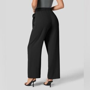 Halara Black High Waisted Tie Side Invisible Zipper Wide Leg Work Pants|NEW~NWT!