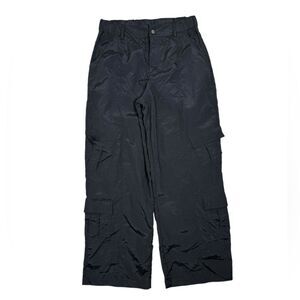Halara Black Mid Rise Side Pocket Wide Leg Nylon Casual Cargo Pants