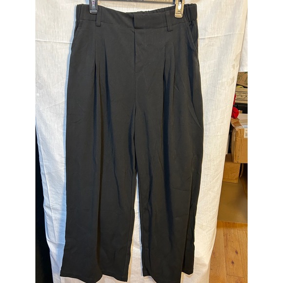 Halara Black Wide Leg Pleated Pullon Pants Womens Size 44 Flowy Comfortable