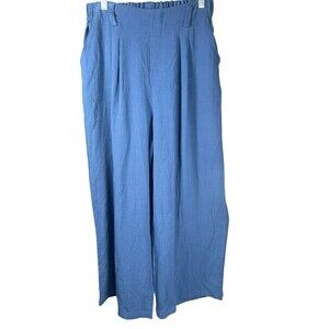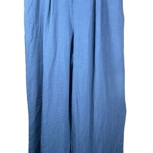 Halara Blue Linen Look Wide Leg Palazzo Pants Size M Petite High Rise Pockets