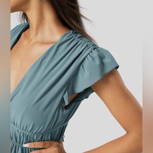 Halara Breezeful™ Deep V Neck Butterfly Sleeve Backless Midi Stone Blue Size XS