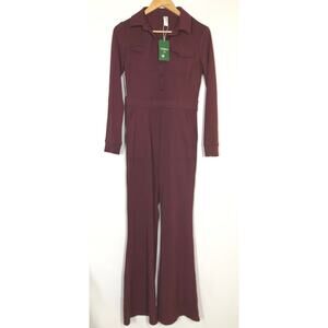 Halara Cargo Jumpsuit Waffle Knit Long Sleeve Flare Leg Evening Red NWT Medium
