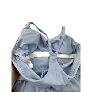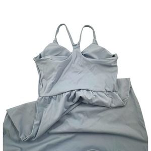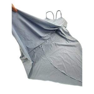 Halara Cloudful Air Fabric Backless Racerback Stacked Crossover Hem Mini Cool Touch Casual Dress Sz S in chambray blue