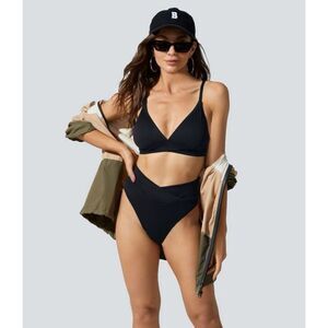 Halara Contrast Adjustable Strap Crossover Hem Bikini Top swimsuit Size M NWT