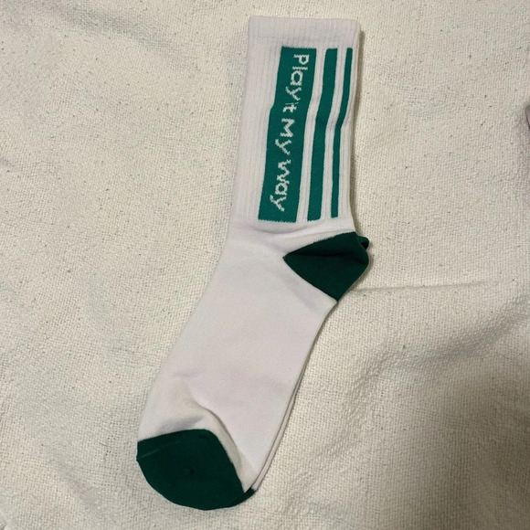 Crew length socks white with green stripes. Halara brand. Women’s size. NWT new in bag never worn