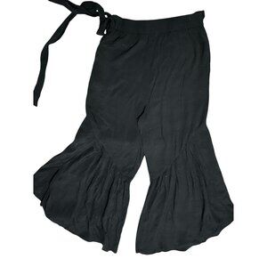Halara Crinkle Textured Wide Flowy Leg Tie Waist Palazzo Pants Sz Medium Black Z