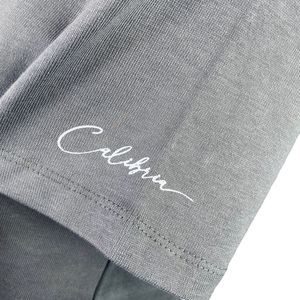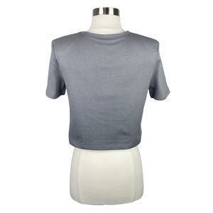 Cropped crewneck tee, dark gray, short sleeves, shoulder pads, pullover style, tik tok famous brand