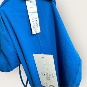 Halara Cut Out Bodycon Midi Dress | Large | Blue High Neck Leg Slit Drawstring