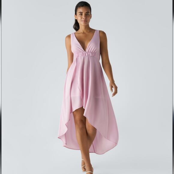 Halara Deep V Neck Sleeveless Crossover High Low Flowy Maxi Wedding Guest Dress