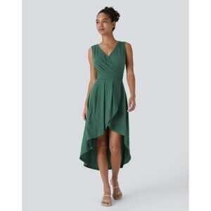 Halara Deep V Neck Sleeveless High Low Crossover Hem Midi Casual Dress Sz Large