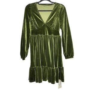 Halara Everyday Deep V-Neck Ruffled Hem Velvet Mini Party Dress Womens Small NWT