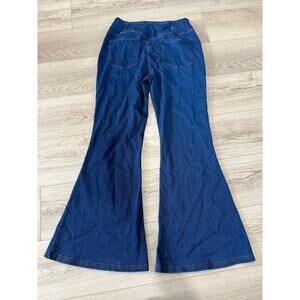 Halara Flex Crossover Flare Washed Casual Stretch Jeans Denim Navy L Petite