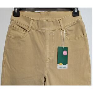 Halara Flex High Waisted Beige Straight Leg Pockets Stretchy Knit Denim Jeans-XS