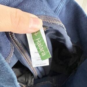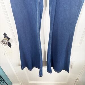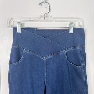 Halara Flex High Waisted Crossover Pocket Washed Stretchy Knit Casual Flare Jeans Size Small {S}. Color: Bright Blue Denim {darker wash}. Very good, preowned condition. Four way stretch. Breathable. Soft. Lightweight. Comfortable and soft like leggings. From Halara: designed to look like denim, innovated to feel like athleisure. Halara Flex gives you the stretch and softness that lets you move without restriction. Ultra slim fit. Back and side pockets. Pull on style. Long length. High rise. High stretch. 59% cotton, 30% polyester, 11% Elastane. Machine wash. Tumble dry.