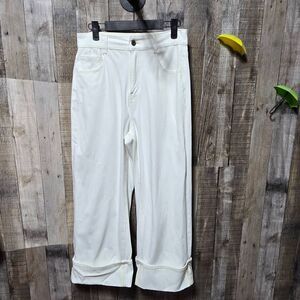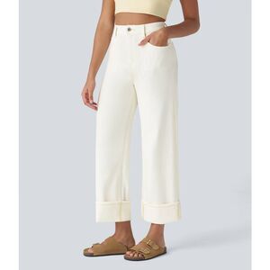 Halara Flex High Waisted Pockets Rolled Hem Wide Leg Washed Casual Jeans