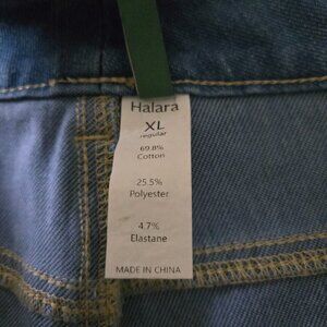Halara Flex Waisted Pockets Washed Casual Bootcut jeans. These are in the Cedar Blue wash and a size XL. They measure as follows: waist-36 inches, hips-40 inches, rise-11.5 inches, and inseam-30 inches.