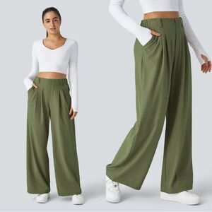 Halara Flex™ High Waisted Side Pocket Wide Leg Waffle Work Pants in Loren Green