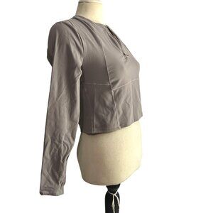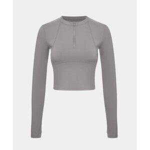 Halara Half Zip Long Sleeve Cropped Active Workout Shirt Sz Large Womens Gray