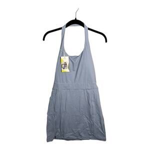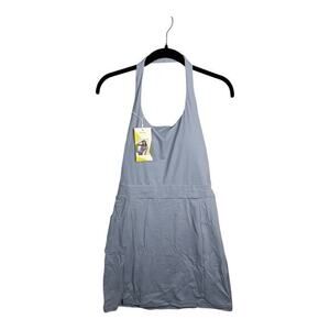 Halara Halter Backless Pocket Split Hem Mini Yoga Active Dress Light Baby Blue M