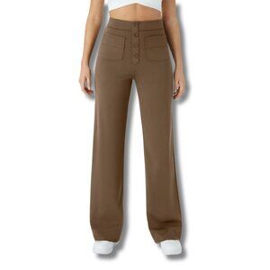 These Halara women's high-waisted casual pants feature a flattering straight leg and multiple pockets for a chic, functional look. The brown/sepia trouser has a pull-on, stretchy fabric construction for comfort and a refined yet relaxed fit.