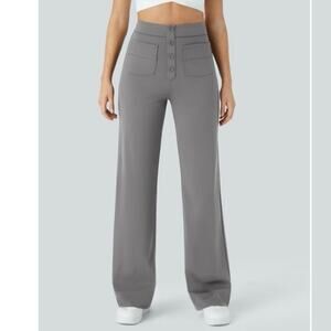 Halara High Waisted Button Pockets Straight Leg Casual Pants Women’s L Gray