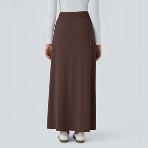 Halara High Waisted Decorative Buckle Split 2-in-1 Maxi Casual Skirt Sz XS Brown