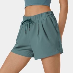 Halara High Waisted Elastic Waistband Drawstring Shorts In Shadow Blue Size M