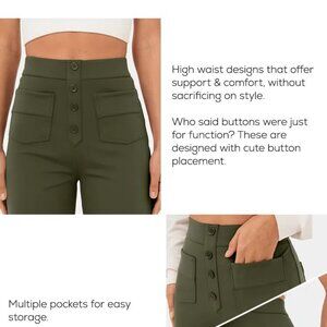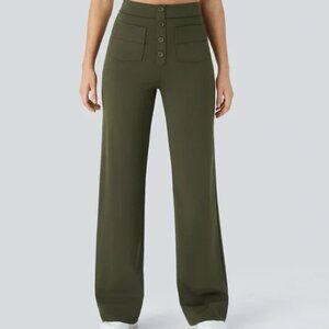 Halara High Waisted Multiple Pockets Straight Leg Pants - Forrest Green - XL