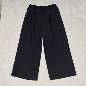 Halara High Waisted Pleated Wide Leg Waffle Weave Work Pants Black Large Petite