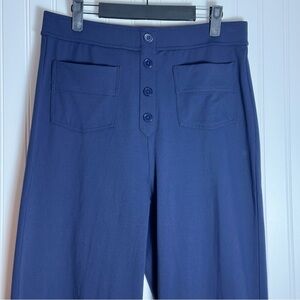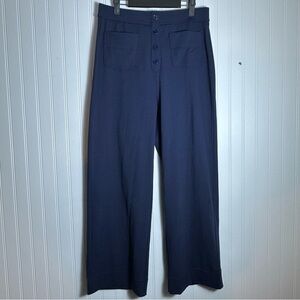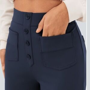 Chic navy pants with button detail. Perfect for any occasion.