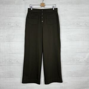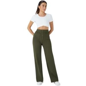 Halara High Waisted Straight Leg Casual Pants Size L Olive Green Stretch Pockets