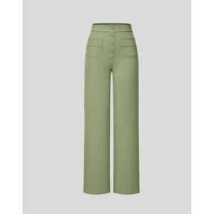 Halara High Waisted Straight Leg Sz XS Womens Green Button Multi Pockets Casual