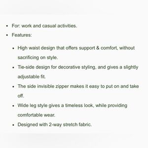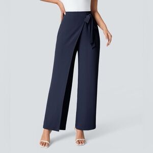 Halara High Waisted Tie Side Invisible Zipper Wide Leg Work Pants Small Tall