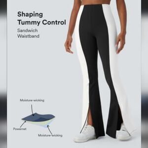 Halara High Waisted Tummy Control Split Hem Color Block Flare Yoga Gym Leggings