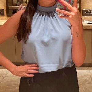 Halara Keyhole Back Halter Plicated Sleeveless Curved Hem Work Blouse/Shirt| NEW