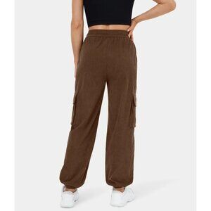 Halara Mid Rise Drawstring Side Pocket Corduroy Casual Cargo Joggers Brown S