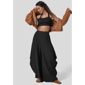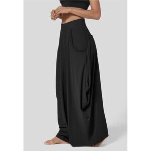 Halara Mid Rise Multiple Pockets Draped Wide Leg Pants Sz Large Womens Black Cas